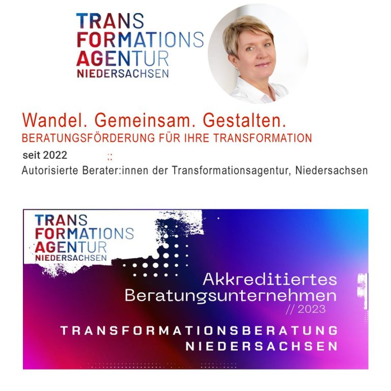 - 2022 - Akkreditierte Beraterin der Transformationagentur Niedersachsen